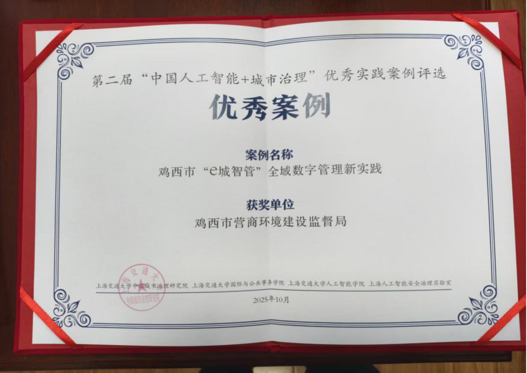 喜报!“鸡西市‘e城智管’全域数字管理新实践”喜获全球城市论坛2025之“人工智能+城市治理”创新论坛优秀案例奖